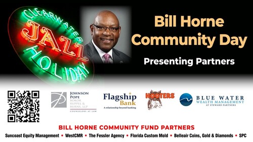 BILL HORNE COMMUNITY DAY SPONSORSHIPS AND CONTRIBUTIONS HELP CLEARWATER JAZZ HOLIDAY FOUNDATION, INC. SUPPORT AND SUSTAIN THE FESTIVAL TRADITION AND YEAR-ROUND EDUCATION & OUTREACH INITIATIVES AND SPECIAL EVENTS. BY PURCHASING BILL HORNE COMMUNITY DAY SPONSORSHIPS AND MAKING COMMUNITY DAY CONTRIBUTIONS, YOU UNDERSTAND AND AGREE ALL FUNDS CONTRIBUTED WILL BE NON-REFUNDABLE, FOR ANY REASON, INCLUDING WITHOUT LIMITATION, IF THE EVENT IS DELAYED OR MUST BE CANCELLED IN WHOLE OR IN PART DUE TO WEATHER, FEDERAL, STATE, AND/ OR LOCAL MANDATES OR OTHERWISE RELATED TO THE COVID-19 PANDEMIC, OR FOR ANY OTHER REASONS. THE CLEARWATER JAZZ HOLIDAY FOUNDATION SHALL NOT HAVE ANY OBLIGATION TO REFUND ALL OR ANY PORTION OF YOUR PURCHASE OR CONTRIBUTION. BY ENTERING A CLEARWATER JAZZ HOLIDAY EVENT, YOU AGREE TO ALL TERMS OF ENTRY. CJH EVENTS ARE RAIN OR SHINE. ALL ARTISTS SUBJECT TO CHANGE OR CANCELLATION.