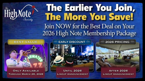 High Note Society memberships are intentionally offered prior to the release of the festival lineup as a way to support the Clearwater Jazz Holiday Foundation and its year-round commitment to Music, Education & Outreach.